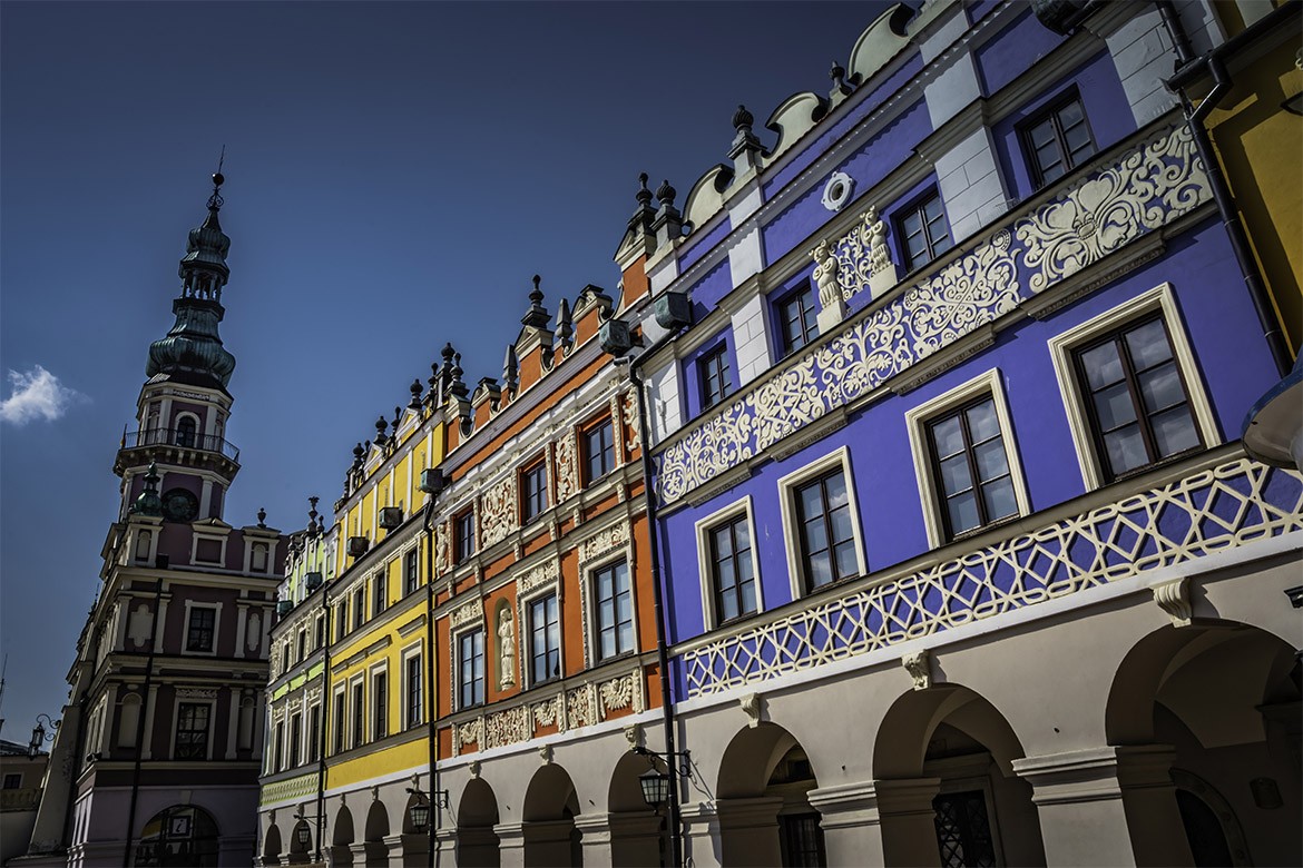 Zamość est un ensemble architectural à l’ordonnance urbanistique unique au monde et très proche de la notion de « ville idéale ». Elle est parfois aussi désignée par le terme de « perle de la Renaissance », car c’est là que se trouvent des œuvres d’art d’une grande beauté et d’une valeur historique inestimable. Il y a bon nombre de monuments historiques à Zamość, parmi lesquels se distinguent l’hôtel de ville avec sa tour élancée, sans doute le plus beau de Pologne, les maisons avec galerie à arcades bordant la grande place du Marche, mis surtout les demeures aux riches motifs ornementaux ayant appartenues à des marchands arméniens. L’intérieur de la cathédrale abrite des œuvres d’art de grande valeur. Le palais des Zamoyski et l’Académie de Zamość, adaptes à leurs fonctions contemporaines, ont beaucoup perdu de leur splendeur d’autrefois, mais les puissants murs du système défensif, qui atteignent par endroits jusqu’à sept mètres d’épaisseur, produisent une grande impression. Ils forment l’enceinte de cette vieille cité inscrite par l’Unesco sur la liste du patrimoine mondial.